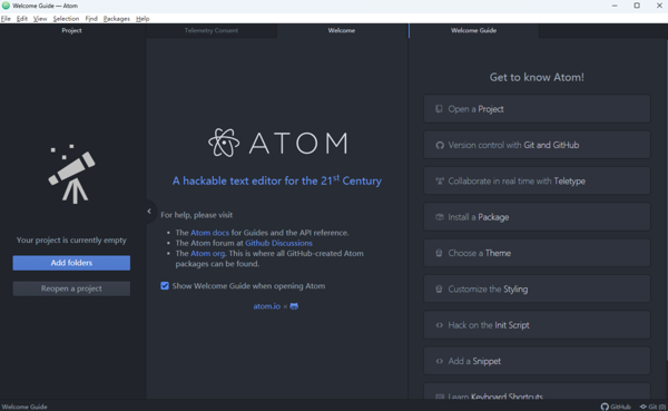 ATOM电脑版是一款开源并能够跨平台的代码编辑器,软件提供了高度可定制性,丰富的插件生态和git集成环境,ATOM最新PC版能够适用于各种编程语言的代码,也支持调试和代码检查等,可以通过修改配置文件来调整编辑器的行为和界面。