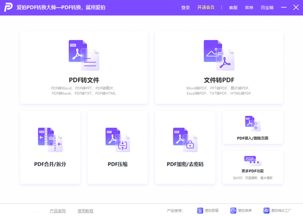 爱拍PDF转换大师电脑版是一款专业、高效、安全的PDF文件格式转换工具,爱拍PDF转换大师PC版支持将PDF文件转换为多种常见文件格式,帮助用户轻松提取或修改PDF内容,精确的文本、图像排版处理,让转换后的文件无损失,用户体验更好。