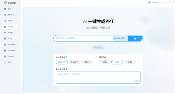 强大 AI 功能:AIPPT 功能可利用先进的 AI 技术,根据用户输入的关键词,自动生成条理清晰、设计精美的 PPT 内容,最快 1 分钟可生成 PPT 模板,且支持论文答辩、教学课件等多种类型。