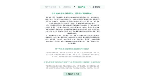 面试前精准押题,基于目标公司面经和行业趋势,智能预测高频问题,生成专属备考清单,减少无效准备。