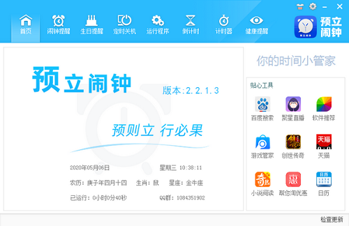 预立闹钟电脑版是一款多功能的时间管理软件,预立闹钟PC最新版支持设置多种类型的提醒,可以根据个人需求自由设置,提供健康提醒功能,用户可以设置周期性提醒,提醒自己休息、喝水、活动等,帮助养成健康的生活习惯。