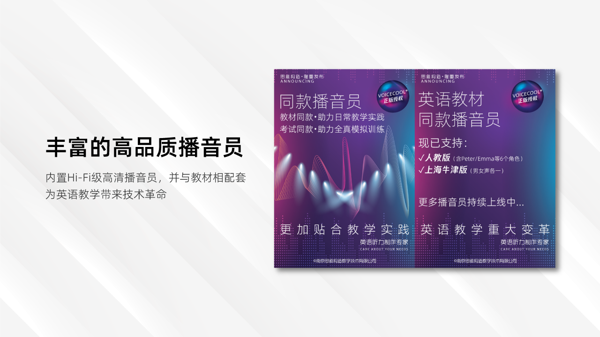 内置第五代高保真真人语音内核,覆盖英语等多语种,提供标准男女声发音,音色纯正、朗读流畅,可完美制作男女声对话听力材料,效果媲美专业人工录制。
