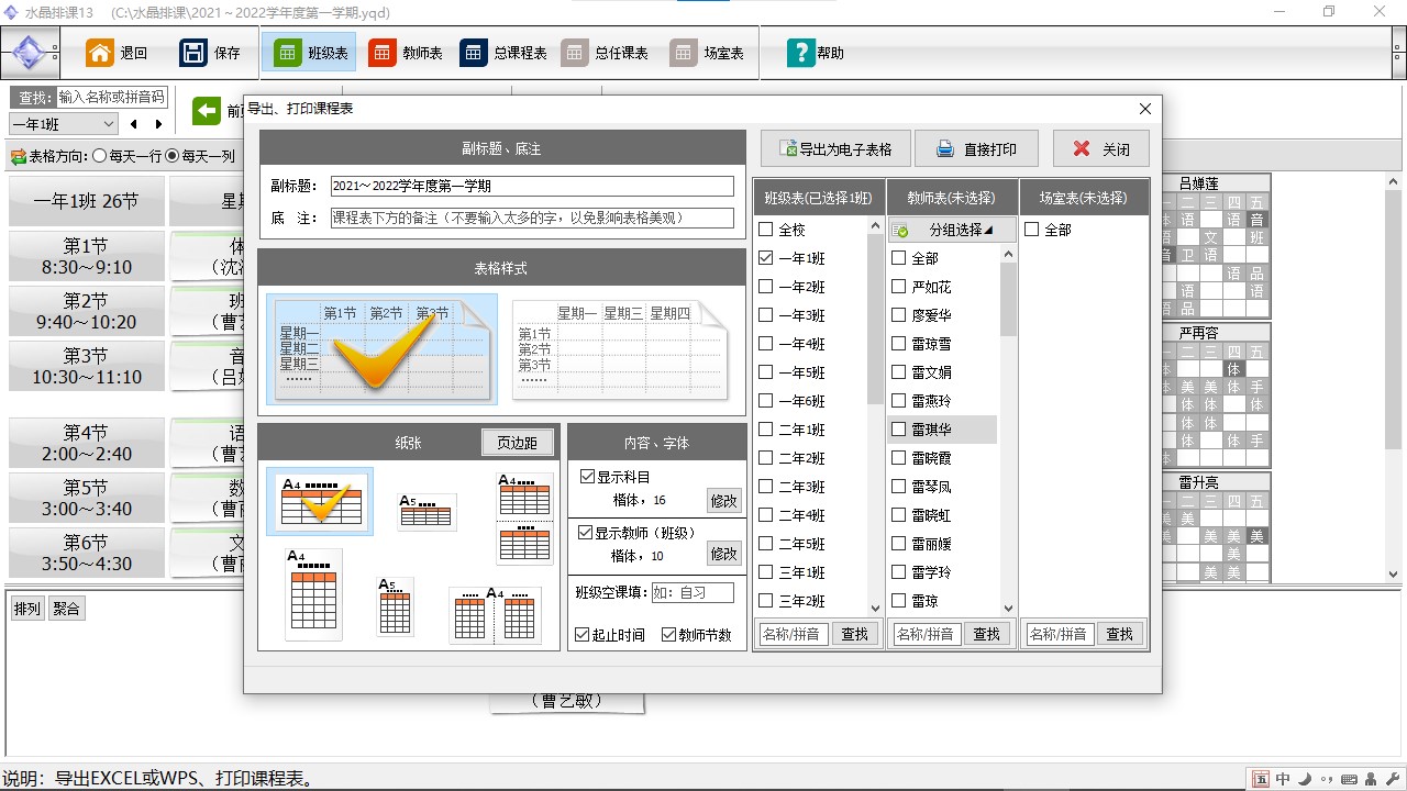 水晶排课是一款非常智能化的排课软件,水晶排课免费版之中用户可以直接输入各个老师的课程以及相关关机的任教情况,以此来快速完成整个学校年级的排班情况,让课程变得合理化,而且也让每一个老师拥有合理的时间来安排课程内容。