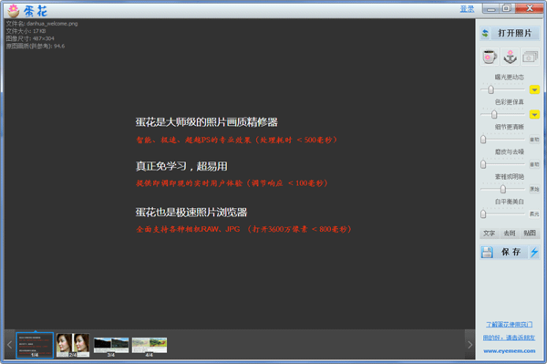蛋花美照画质精修器电脑版是一款专注于照片画质提升与修饰的智能软件,蛋花美照画质精修器PC最新版能够自动识别照片中的各种问题,并进行有效的调整和修复,支持用户根据个人喜好进行自定义调节,实时响应,所见即所得,方便用户根据具体需求进行微调。