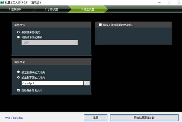 批量水印大师软件支持输出文件的格式、质量和目录的自定义设置,用户可以根据需要选择保存路径和输出格式。