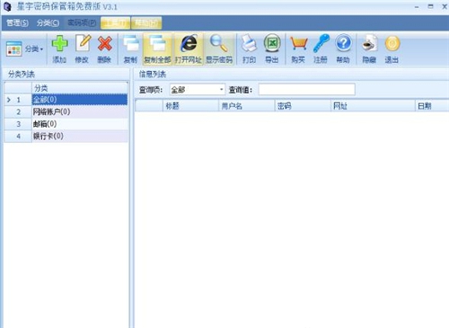 星宇密码保管箱软件是一款功能全面、安全可靠的密码管理工具,星宇密码保管箱电脑版可以方便地记录和管理多个账号的登录信息,支持将账户密码复制到剪贴簿,方便快速粘贴到对应登录界面,支持开启密码关联的网页或程序,省去手动输入网址、查找程序的步骤。