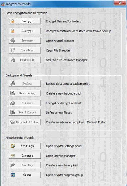 Kryptel Wizard电脑版是一款先进且实用的Windows加密工具,Kryptel Wizard最新版提供自定义文件集加密规则,一键轻松完成整个文件集的加密操作,支持加密容器管理,可向已有的加密容器中添加新文件,还内置文件粉碎机、安全密码管理器等,方便用户随时查看、删除文件。