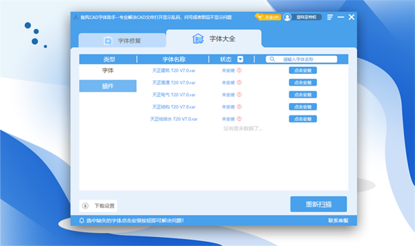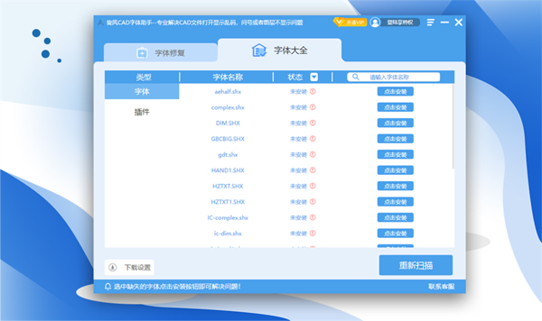 旋风CAD字体助手电脑版是一款专为CAD用户设计的工具软件,旋风CAD字体助手2025最新版提供了智能扫描、修复和字体管理功能,帮助用户轻松解决字体缺失、乱码等问题,可以让设计文件能够正确显示,支持对多个文件进行批量修复,极大提升工作效率。