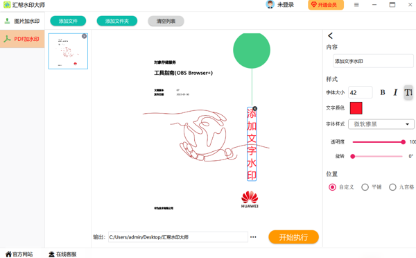 汇帮水印大师软件是一款简便易用、高效处理的批量水印添加工具,汇帮水印大师电脑版支持自定义字体、颜色、大小、透明度等属性,图片水印则允许用户使用自定义图像文件作为水印,可以将文字或图片水印直接添加到PDF文件的每一页,方便保护文档内容。