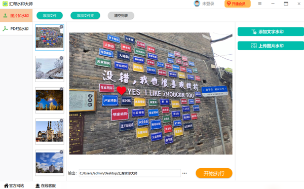 支持上传Logo、印章等图片作为水印,并可调整大小、透明度、位置,完美实现品牌标识与版权保护。