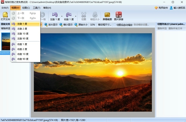 支持图片左右微量旋转、放大 / 缩小 / 适合窗口显示,快速修正倾斜、放大查看细节,提升裁切精度。