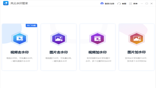 凭借前沿的算法和精湛的专业技术,风云水印管家能够一键清除图片和视频中的水印及各类瑕疵。