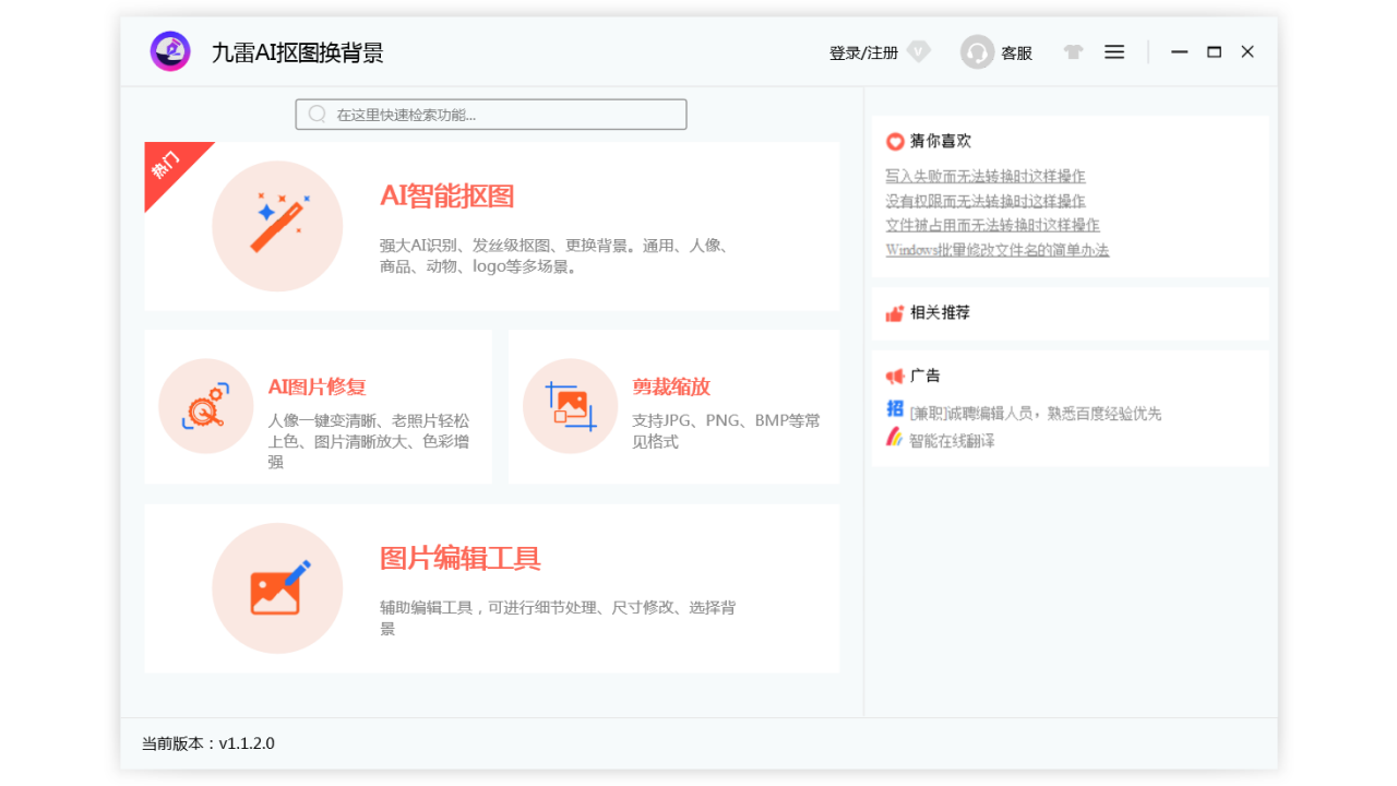 九雷AI抠图换背景电脑版是一款利用人工智能技术来简化图片处理的工具,九雷AI抠图换背景PC版提供的多种背景模板中选择,也可以自定义上传自己喜欢的背景图片,为抠好的主体增添个性化的背景,在更换背景的过程中,软件提供实时预览功能,用户可以即时看到效果,方便调整和修改。