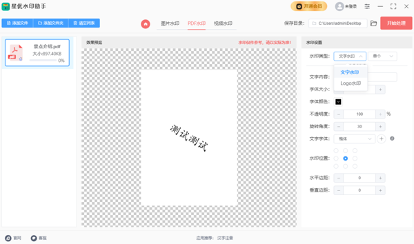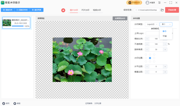 星优水印助手软件是一款功能强大且易于使用的批量水印添加工具,星优水印助手电脑版提供多种水印自定义选项,用户可以根据需要自由设置水印的文字内容、字体、大小、颜色、透明度、位置等,轻松调整其大小和透明度,能够让水印效果更加个性化与专业。