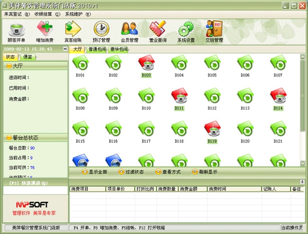 美萍餐饮管理系统去除了商品库存管理、后厨打印等模块,使得操作流程更加简洁,专注于门店最常用的收银和会员管理功能。