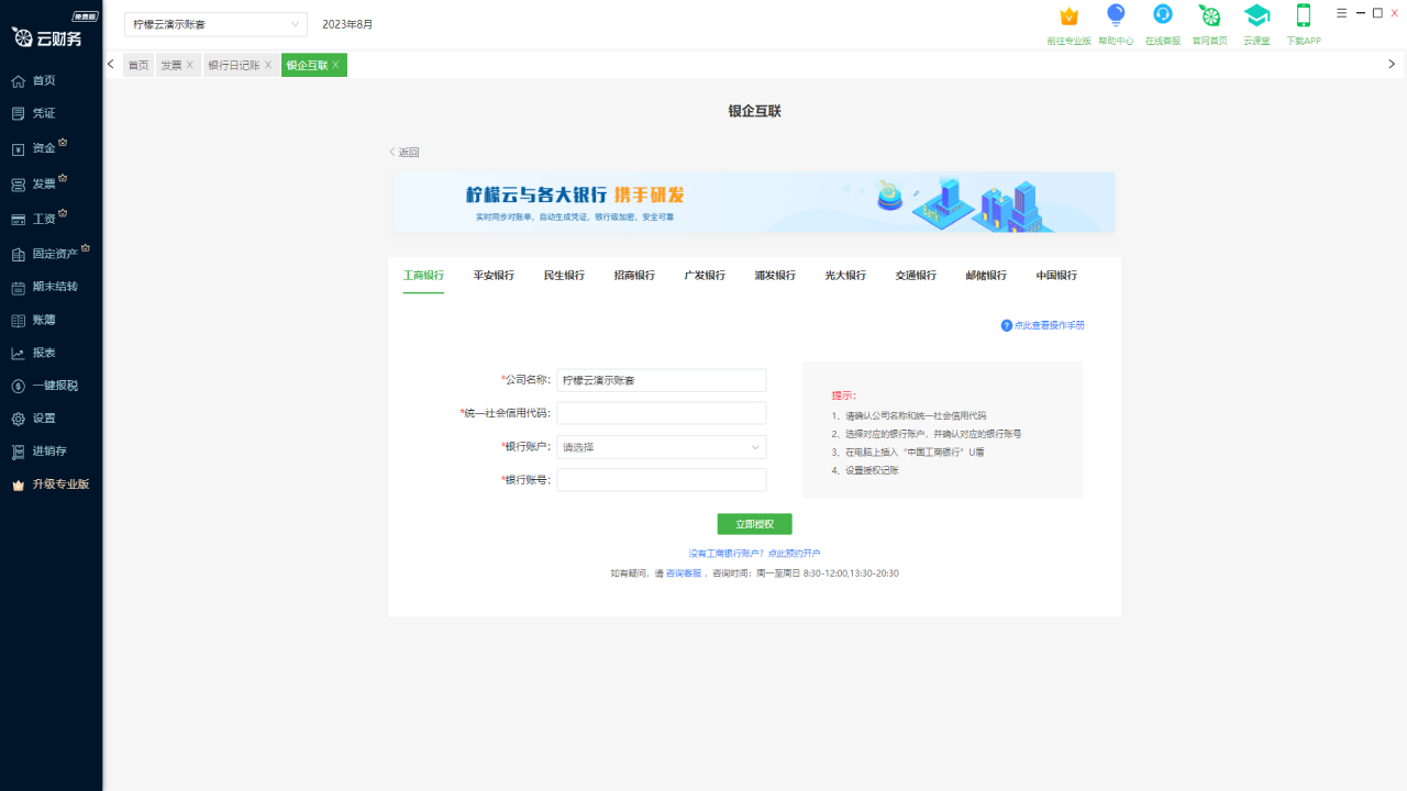 柠檬云财务软件是一款好用且功能强大的记账软件,柠檬云财务软件免费电脑版之中用户可以该软件之中记录企业的各项支出进账,并且可以直接和银行流水进行对接,只需要快速连入网络就可以将银行流水内容进行分析且自动排版,帮助工作者快速整理。
