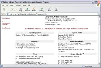 BelarcAdvisor软件能检测计算机的安全状态,包括操作系统是否安装了最新的安全补丁,防病毒软件是否在运行,防火墙是否启用等。