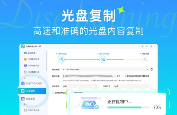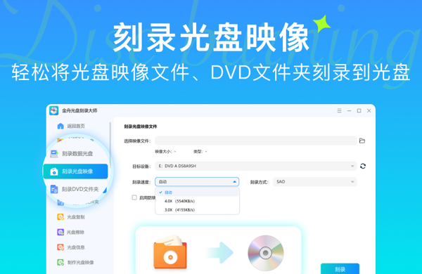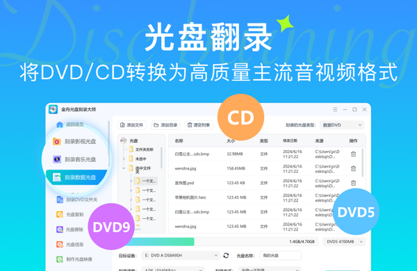 金舟光盘刻录大师是一款功能强大的光盘刻录软件,金舟光盘刻录大师电脑版支持数据刻录、音频刻录、视频刻录、光盘复制等多种刻录模式,用户可以根据需求选择不同的刻录任务,提供多种光盘格式、高速刻录、光盘镜像制作等功能,能够满足不同用户的需求。