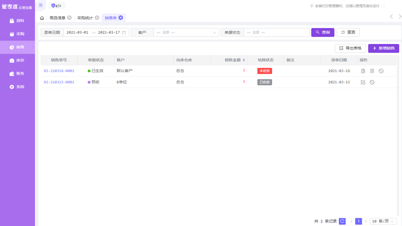 管家婆几乎直观的表现整个公司的收入和支出情况,非常适合财务、会计等等人员来进行日常操作,并且操作简单无需单独培训,新手也可以上手操作,是为批发、零售等各种行业客户提供基础的存、财务管理、平台订单发货记账以及仓储作业等等关键节点明晰数据的优秀软件。