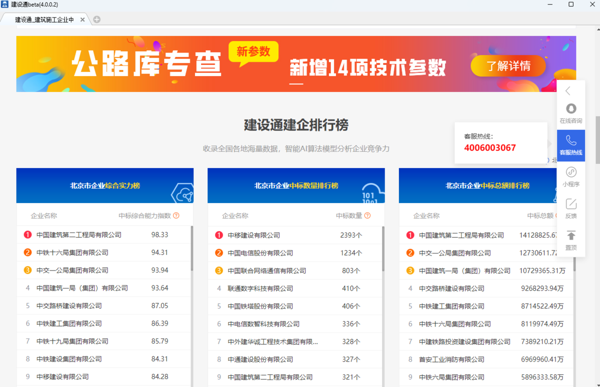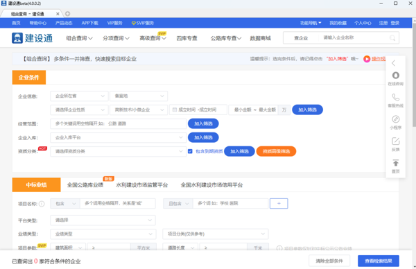 查企业:可一键查询建筑企业多维数据,涵盖中标业绩、建造师在建、经营信息、荣誉、资质、备案、人员、工商信息、经营风险、司法风险等。