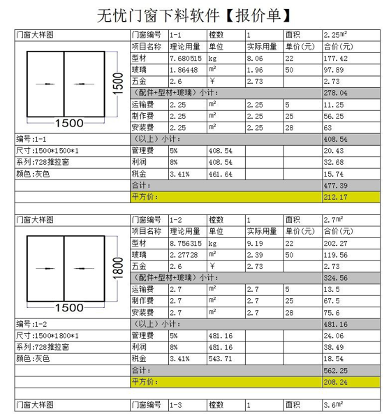 无忧门窗下料电脑版是一款专为门店和铝材店设计的门窗下料软件,无忧门窗下料PC版支持个性化定制操作,用户可在属性定义窗口中对构件类型快速自定义、自由绘制和提取编辑,也能自定义设计窗型和计算公,能够记录每次开料的信息,方便后期追溯和管理,提供完整的生产记录。