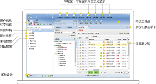 部署灵活便捷:基于云计算技术,无需硬件投入,可实现云端秒级扩容,支持分布式坐席与远程办公。系统硬件配置仅需话机、联网电脑与耳麦即可完成部署,后期扩展时只需在分支机构部署少量设备,修改业务流程也不会中断当前服务。