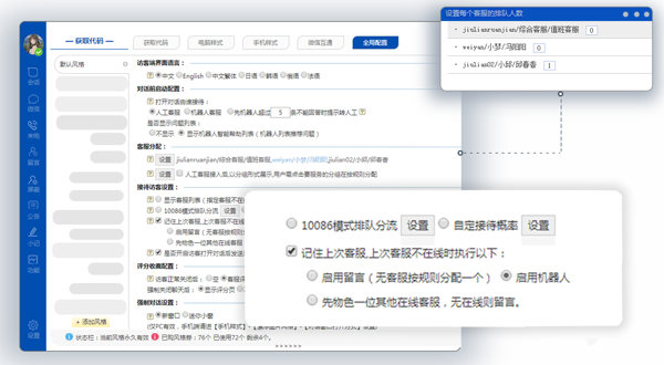 便捷的操作体验:PC 电脑版、安卓 /iOS 端、微信端均采用可视化操作,界面简洁直观,客服人员无需复杂培训即可熟练使用。同时,支持快速配置,可自定义对话窗口风格、邀请词、自动问候语等。