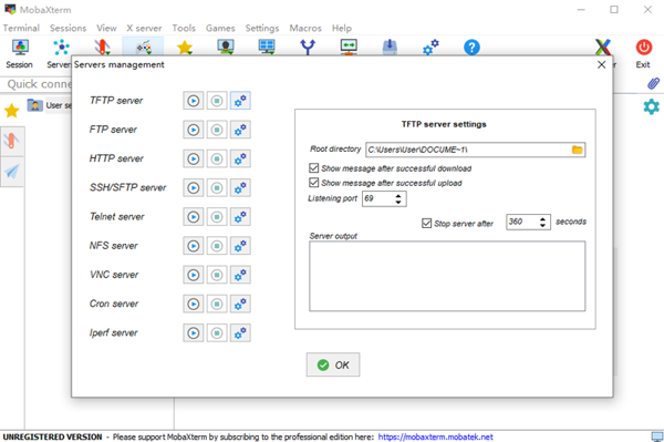 MobaXterm 支持 SSH、RDP、VNC、X11、FTP、SFTP、Telnet 等一系列丰富的远程连接协议。