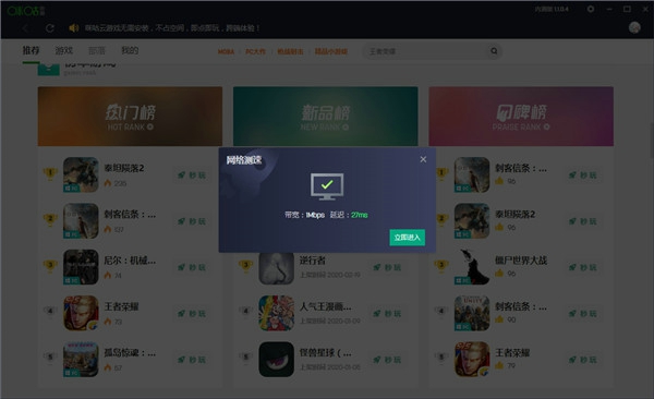 咪咕快游电脑版是一款游戏云服务平台,软件可以为用户提供便捷的云游戏体验,咪咕快游2025最新版可以让用户无需安装游戏客户端即可直接在线体验,能够解决手机或设备存储空间不足的问题,轻松享受与本地游戏相媲美的流畅体验。