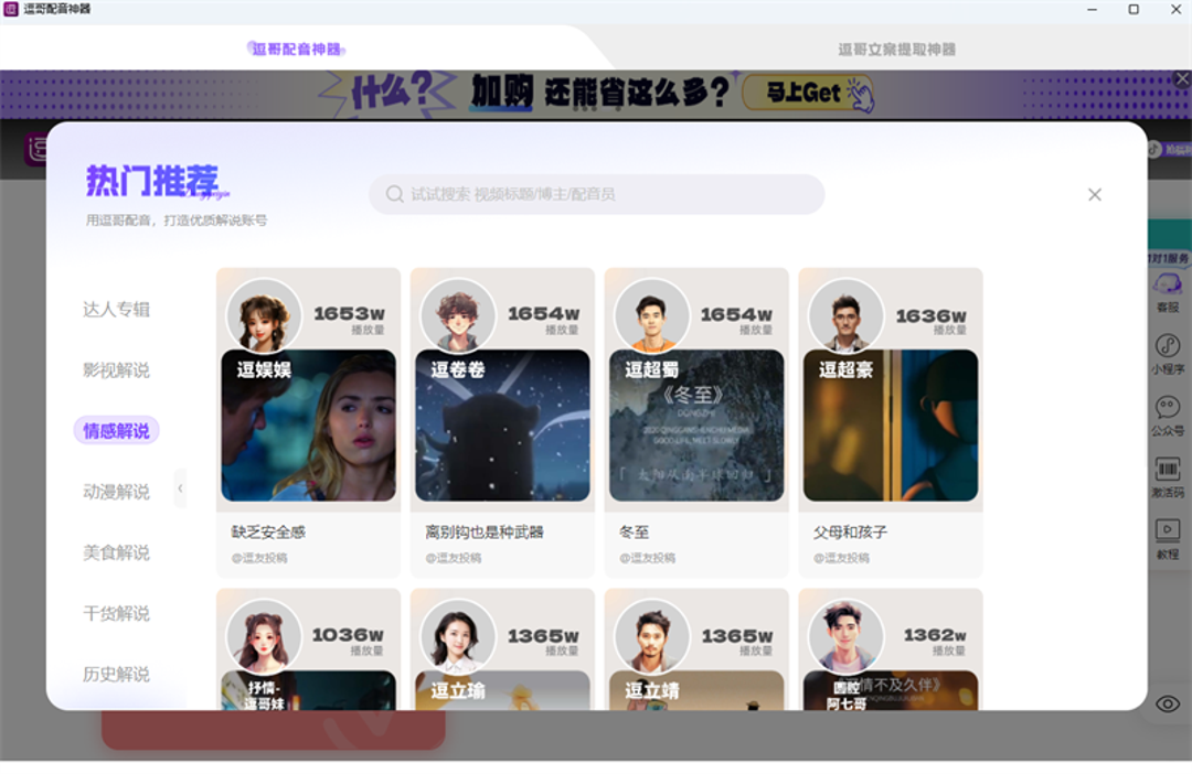逗哥配音神器电脑版是一个功能强大的在线配音制作平台,逗哥配音神器2026客户端能够精准适配影视解说、小说推文、游戏配音、促销广告、课程培训等多种场景,针对不同场景优化配音逻辑,支持语速、语调、停顿等 20 余项定制功能,可开启解说增强、紧凑模式,满足个性化创作需求。