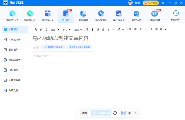 录音识别王电脑版是一款功能全面的语音与文字处理软件,录音识别王2026最新版支持将各种音频文件快速准确地转写为文字,帮助用户轻松获取内容,减少手动记录的时间和精力,提供高效的文字处理方案,帮助用户提升工作和学习效率。