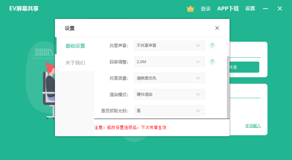 EV屏幕共享免费版是一款简单高效的投屏工具,能够为用户提供实时的屏幕共享和远程协作功能,EV屏幕共享电脑版2025提供了高清的画质和清晰的音质,可以在屏幕共享过程中图像和声音的流畅传输,支持多人同时观看互动,轻松提升沟通效率。