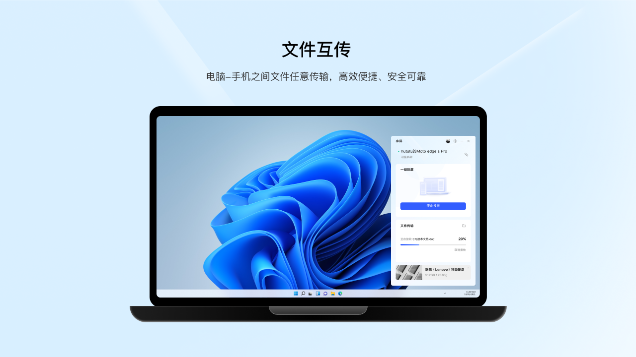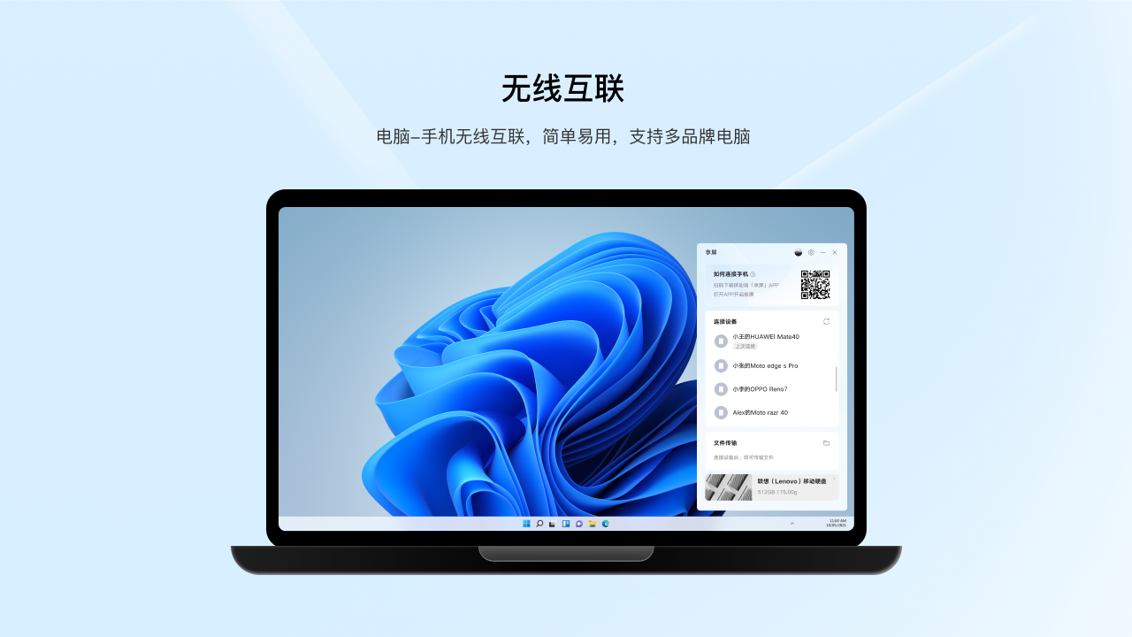享屏之中用户可以使用手机投屏到电脑之上,也可以直接用电脑来控制手机。并且在该软件的连接的时候,用户是可以同时传输文件的,这个时候的传输速度非常快,且不会中断连接。