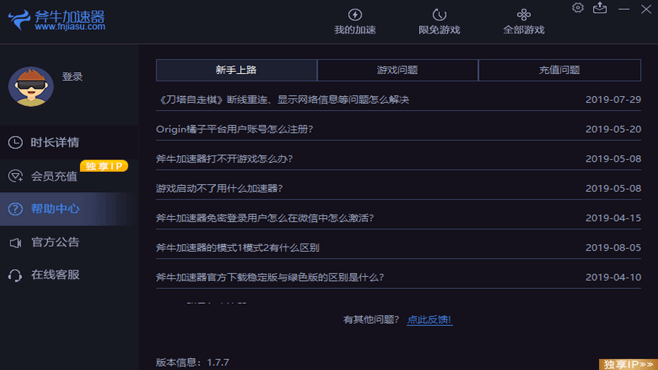 斧牛加速器整体以QoS技术保障游戏的网络不会受到干扰,在软件之中有着多个游戏可以提供专用加速渠道,加速过的游戏不会卡顿,不会丢包,非常稳定。