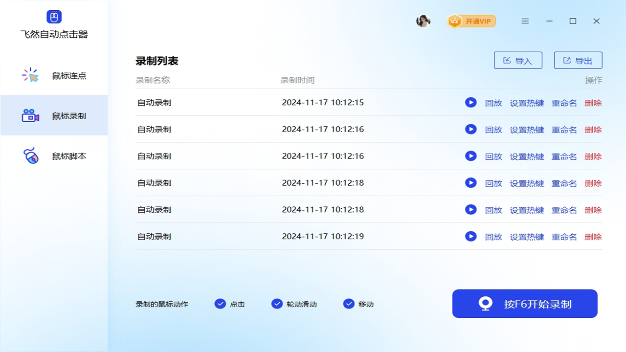 飞然自动点击器之中用户可以快速设置好鼠标连点频率,并且在连点设置之中进行点击录制,以此来确保程序正在运行,该设置可以帮助用户在抢票或者是抢红包的时候可以通过快速点击提高中奖率。