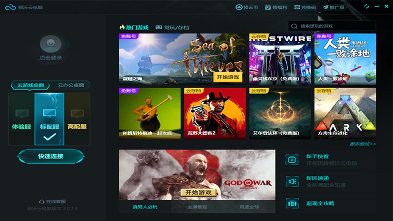 领沃云电脑是联通旗下的一款云游戏平台,领沃云电脑之中有着非常多的游戏可以直接游玩,在平台之中用户不需要下载游戏,只需要等待片刻,等待缓冲完成,用户就可以快速游玩各类游戏,帮助用户在普通的电脑上也可以玩大型游戏。