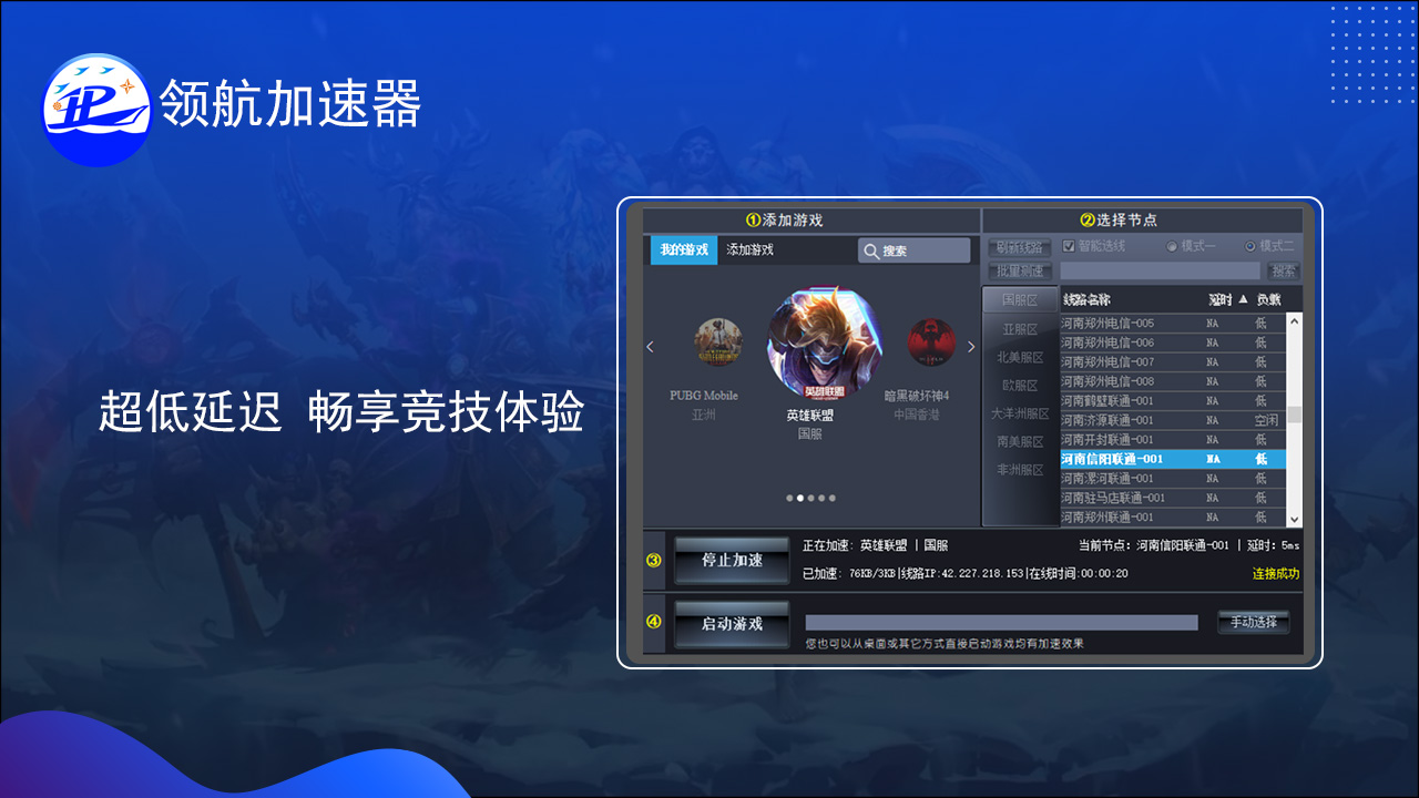 领航加速器有着非常强大的动态ip功能,可以让用户选择自己需要的ip地址,并且该软件线路连接速度非常快,自动更换网速不好的线路,还有高端玩家定制的独享专线,帮助用户有着更好的网速体验。