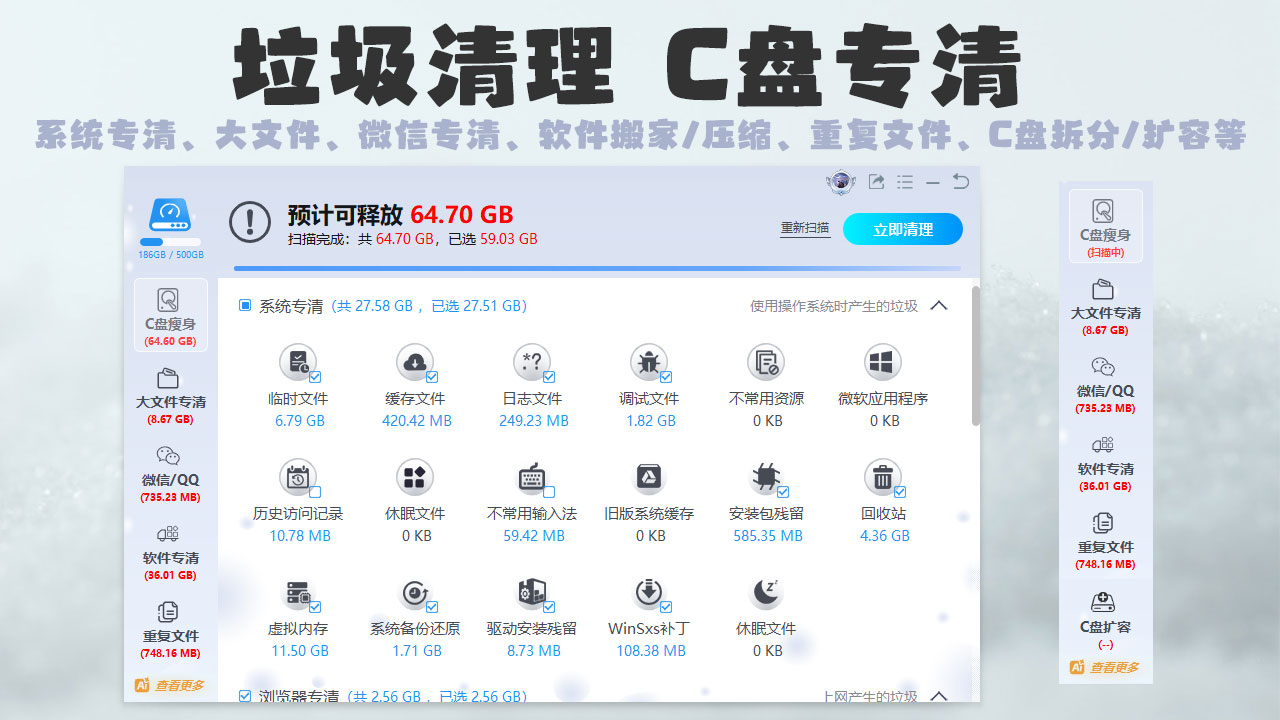精准识别冗余文件:能精准找出 C 盘长期积累的系统临时文件、浏览器缓存等冗余文件,让 C 盘空间得以释放。