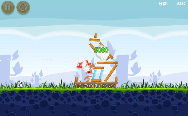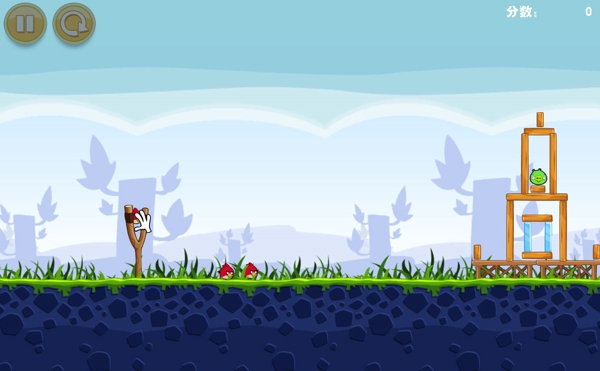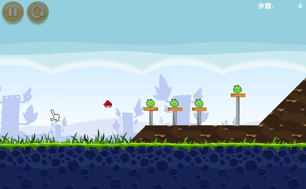 愤怒的小鸟游戏中的每个关卡,玩家需要尽量使用最少的小鸟数量摧毁所有的猪猪,猪猪通常藏在由木块、玻璃和石块组成的建筑物中,玩家需要通过精确的发射击中它们。