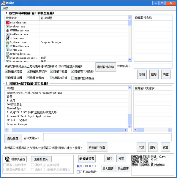 天使老板键软件可以根据需要自定义隐藏窗口的快捷键,支持快速隐藏多个应用窗口,帮助用户在多个任务程序之间切换。