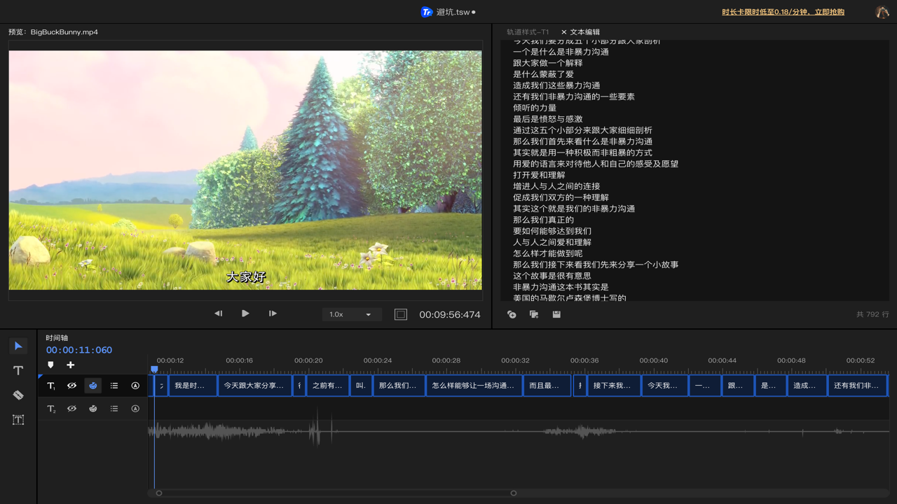 软件采用领先语音识别技术,解析视频语音高效精准。制作 1 小时视频字幕,最快 5 分钟即可完成,准确率高达 97.5%,创作者简单修改便能完成高质量字幕制作,大幅提升效率。