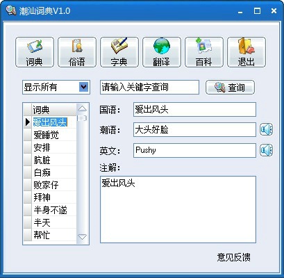 潮汕词典app是一款专为潮汕方言学习设计的软件,潮汕词典电脑版收录了丰富的潮汕方言词汇和俗语,可以帮助用户更好地了解和当地语言,内置的词汇覆盖日常生活、文化习惯、民俗等多个方面,帮助用户全面了解潮汕语言的独特魅力。