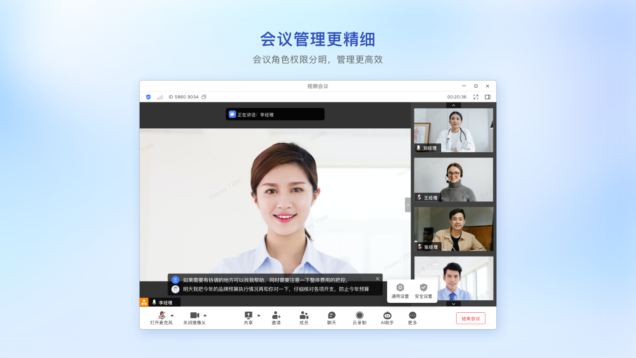 软件免费提供好用的视频会议服务,单场常规会议能容纳 2000 人,网络研讨会可承载 10000 人,且不限时长与场次,满足大规模、高频次会议需求。