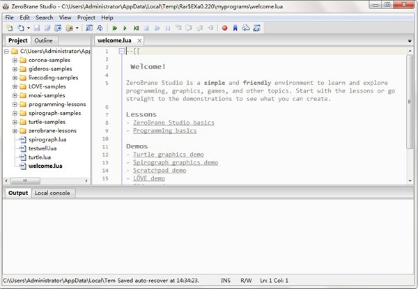 ZeroBrane Studio中文版是一款专为开发者设计的集成开发环境,ZeroBrane Studio电脑版允许将开发环境随身携带,通过移动存储设备即可随时随地开启编码,灵活适应多样化的开发场景,内置了丰富多样的功能工具可以体验。