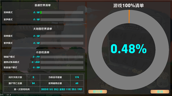 细节优化到位:对游戏的图形和音效进行了改进,并且新增了游戏清单,详细记录玩家玩过的关卡、闯关失败次数、僵尸死亡次数等信息,方便玩家了解游戏进度。