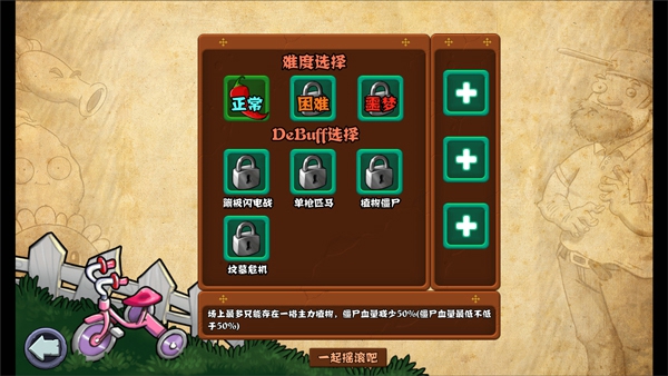 植物大战僵尸射击版游戏提供多种难度选项以及额外的debuff,让玩家能够根据自己的喜好调整挑战难度。
