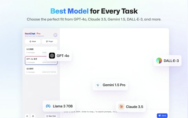 NextChat 支持接入 OpenAI、Gemini 等市场主流大模型,用户可按需自由选择,甚至混合搭配。处理复杂逻辑问题时,调用 GPT-4 能精准剖析并给出优质方案。