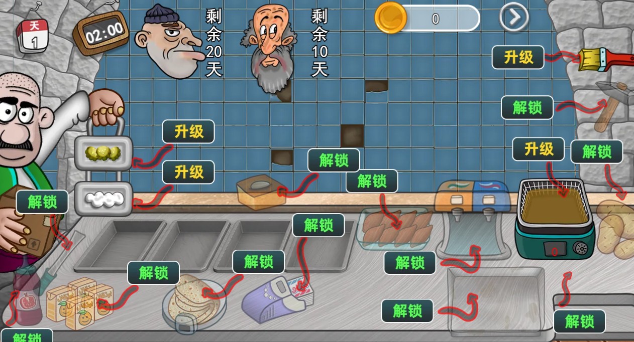 老爹汉堡店游戏是一款结合了餐饮制作、经营管理和快节奏挑战的游戏,老爹汉堡店2025最新版游戏中玩家需要通过高效的操作和灵活的策略,经营自己的沙威玛店铺,逐步发展成沙威玛大王,游戏以其简单却富有深度的玩法、丰富的食材和任务设计。