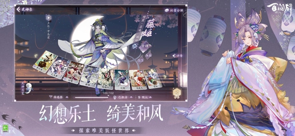 由逾百位顶级画师精心绘制卡牌,式神立绘精致,Live2D 特效栩栩如生,场景唯美,呈现出浓郁的日系和风风格。