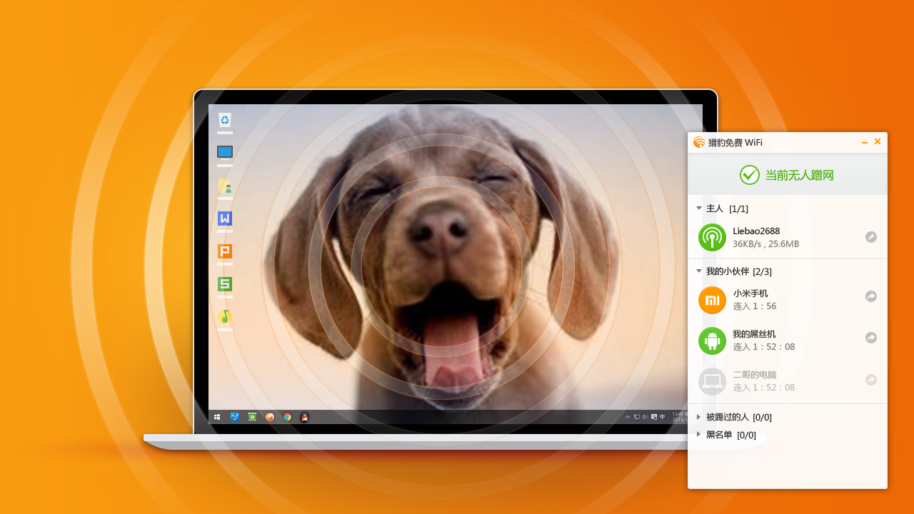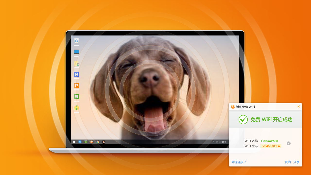 猎豹免费wifi是一款非常好用的网络工具,猎豹免费wifi电脑版之中用户可以利用该软件进行热点的连接以及应用,该软件可以直接帮助用户将设备变成一个热点路由器,从而让你的其他设备连接到该设备的网络之中。